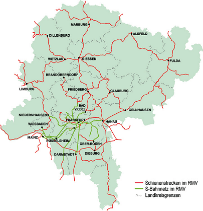 Rhein-Main-Verkehrsverbund (Rhine/Main Regional Transport Association or RMV) is one of the biggest transport associations in Germany. It coordinates and organises regional bus and rail transport services across an area of around 14,000 square kilometres. That’s around two-thirds of the area of the Federal State of Hesse. There are approximately 5 million inhabitants living in the network area.