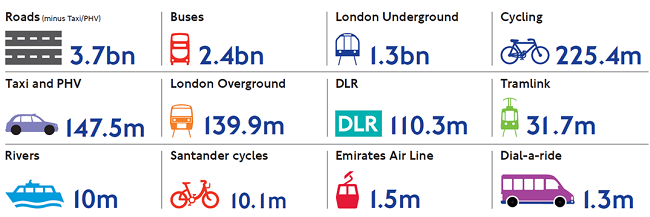 Number of journeys made in London