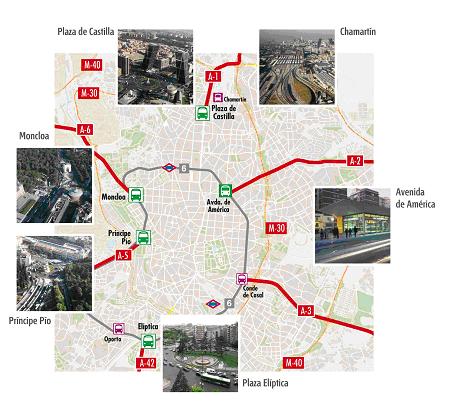 Using the experience gained from these interchanges, via an agreement in 2004 between Madrid City Council, Madrid Regional Government and Consorcio Regional de Transportes de Madrid itself, CRTM drafted the specifications to place out to public tender the construction works, maintenance and operation of six new large transport interchanges (see map for location) all included within the 2004-2007 Interchanges Plan.