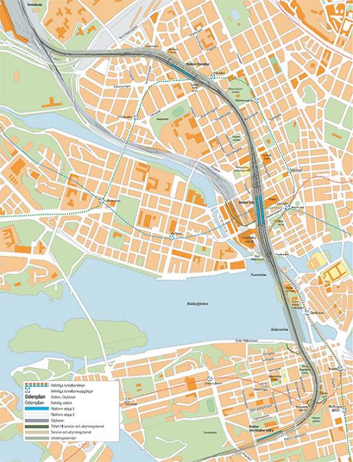 The Citybanan project is a 6-kilometre infrastructure that will double the existing one, which is currently used by local, regional and national rail services. The line will be 30-metre deep will be situates beneath an existing metro line (Blue line). Two new stations will be built in the city centre: Odenplan and T-Centralen.