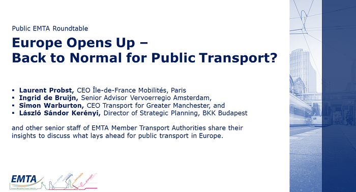 The 28th June 2021 EMTA organized a public roundtable on the subject : Europe opens up – Back to normal for public transport?