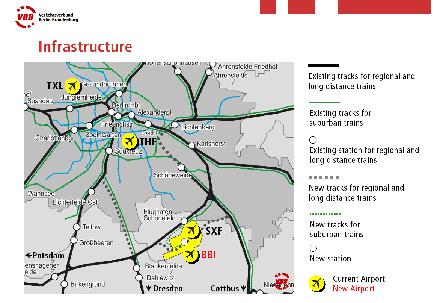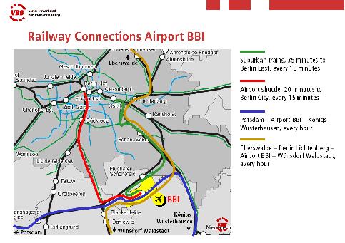 - A new railway station is constructed beneath the airport terminal to ensure fast access by S-Bahn and regional and national railways. Several railway networks will in turn integrate links with the airport.